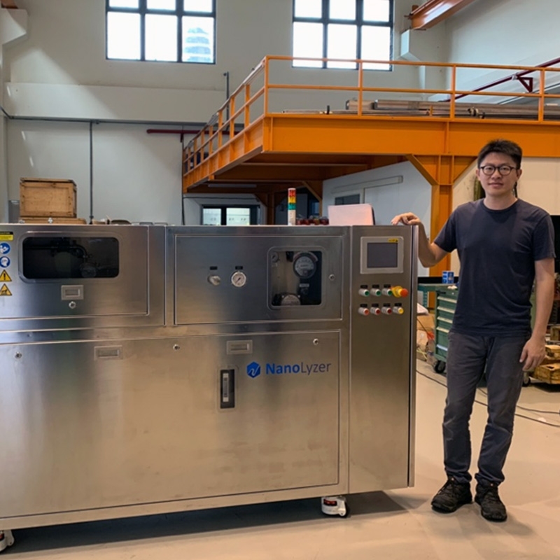 The N200 enhances energy efficiency and is suitable for continuous production. Its stable pressure output characteristics and maximum operating pressure of 30,000 psi have been proven to deliver more stable results in nano-dispersion, high-pressure homogenization, and cell disruption, with superior particle size distribution control. The equipment’s advantage of being free from grinding media contamination makes it ideal for developing high-value samples such as pharmaceuticals and novel materials. This model shares the same design principles as our R&D units, including a fixed geometry flow path and an impingement diamond reaction chamber. The concentrated collision energy distribution ensures uniformity and reproducibility in particle size distribution, and experimental data can be directly scaled up for production. We also offer factory-customized control and planning services for production-scale models to meet the production needs of different materials. Numerous customer references and market reputation confirm that the NanoLyzer N200 is the optimal solution for high-pressure homogenizer requirements in mass production.